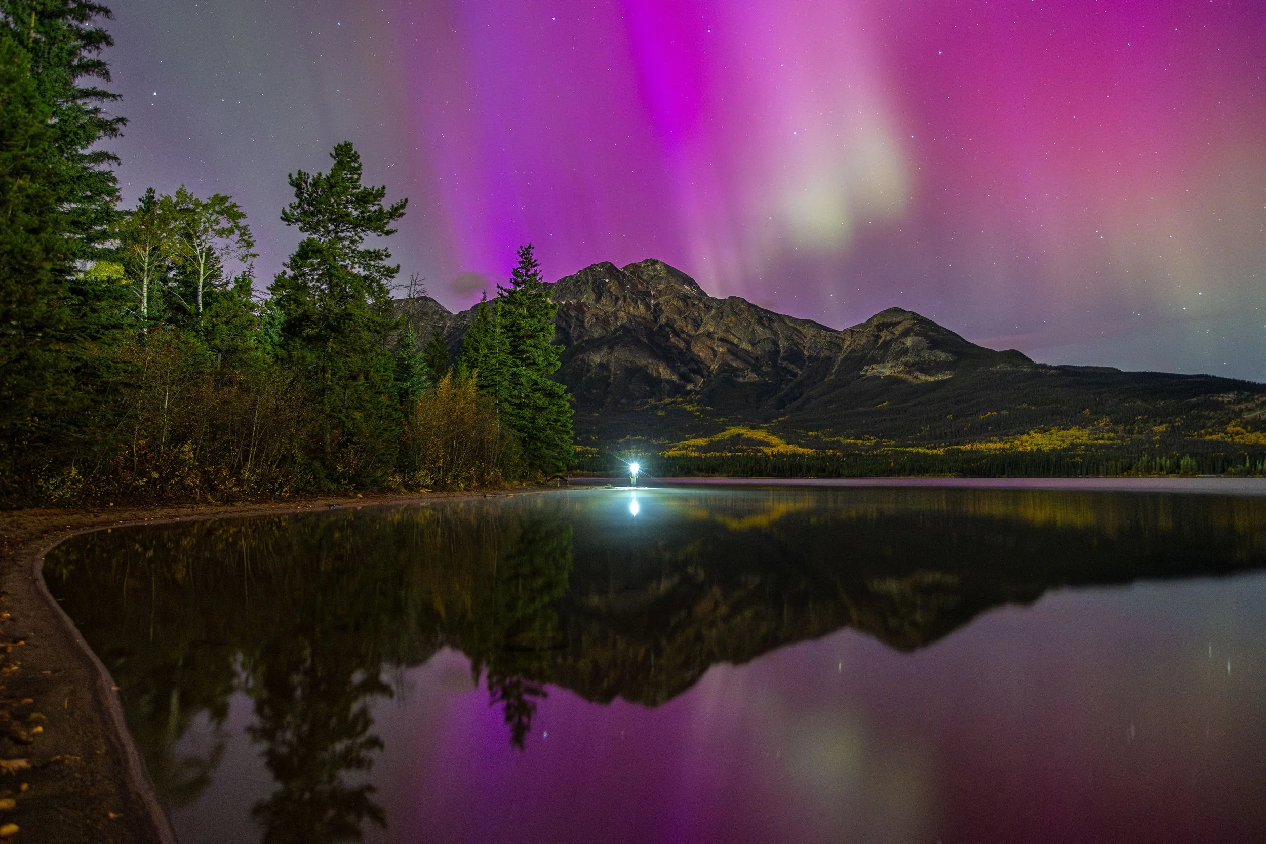 A quiet night of aurora chasing in Jasper is always unforgettable- no matter how many times I’ve seen it dancing in the skies (Megan Posein Photography)