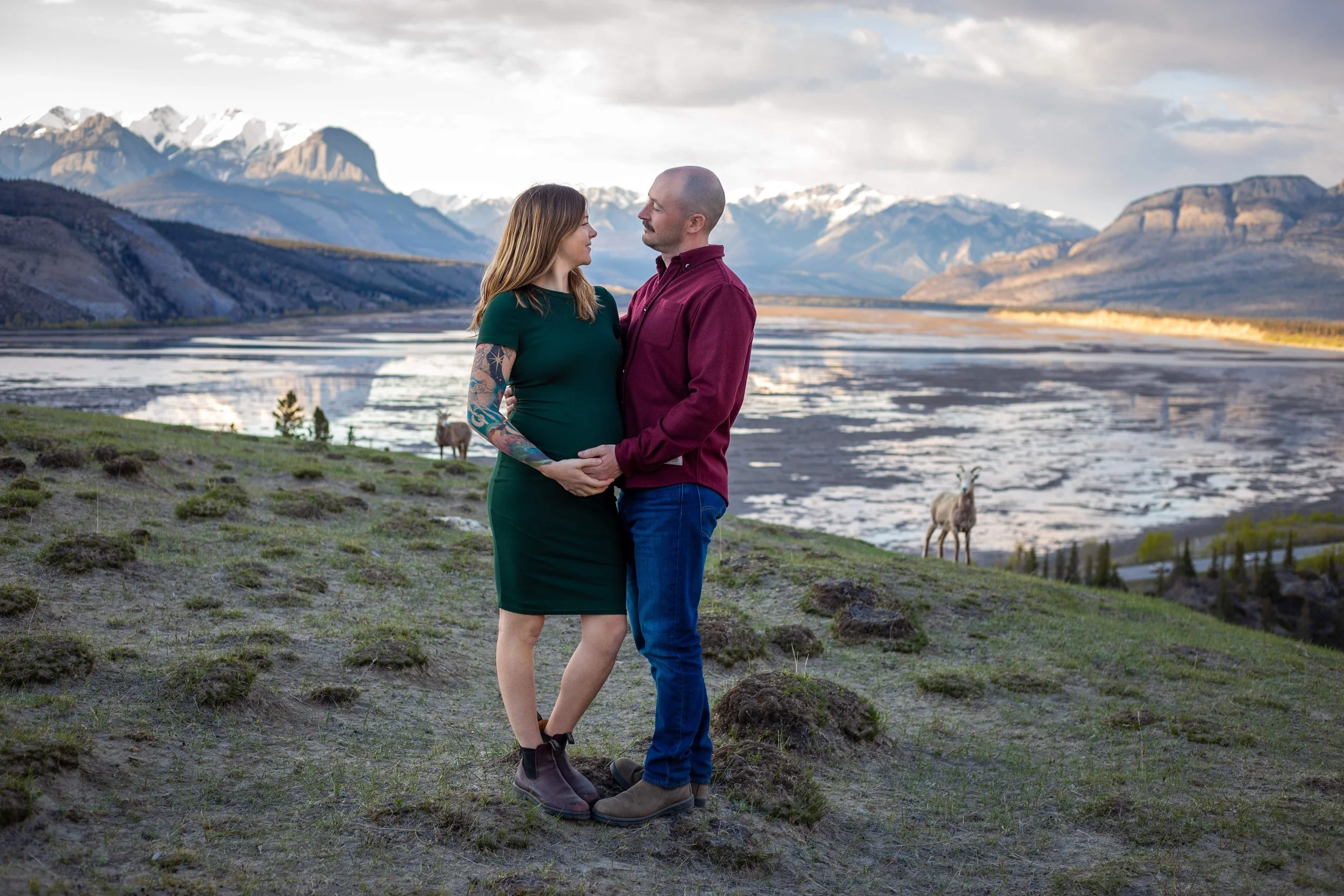 Jasper National Park is more than just a beautiful destination; it’s a living postcard full of spectacular landscapes, tranquil forests, and crystal-clear lakes. There’s a calm energy here that helps everyone breathe a little easier, making it an ideal setting for intimate maternity portraits of couples.