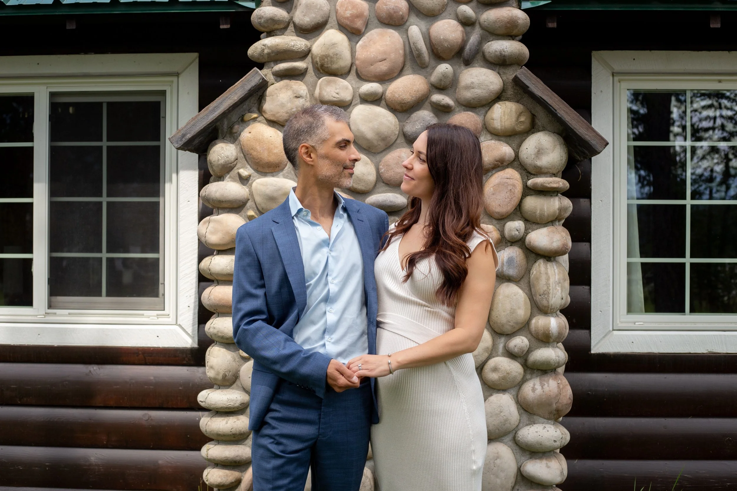 This couple decided to elope along the river just behind their favourite cabins in Jasper at Pine Bungalows
